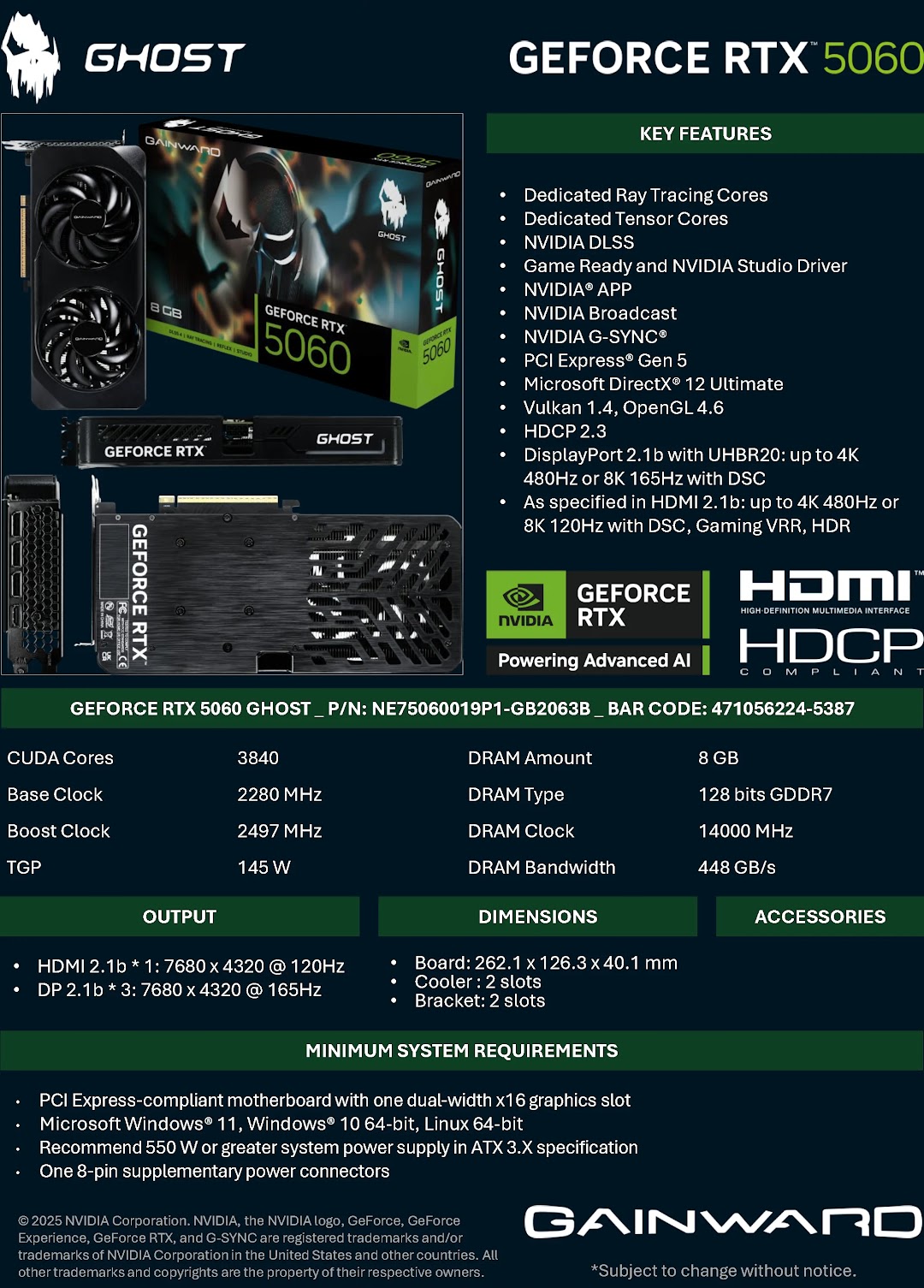 כרטיס מסך Gainward Ghost RTX 5060 8GB