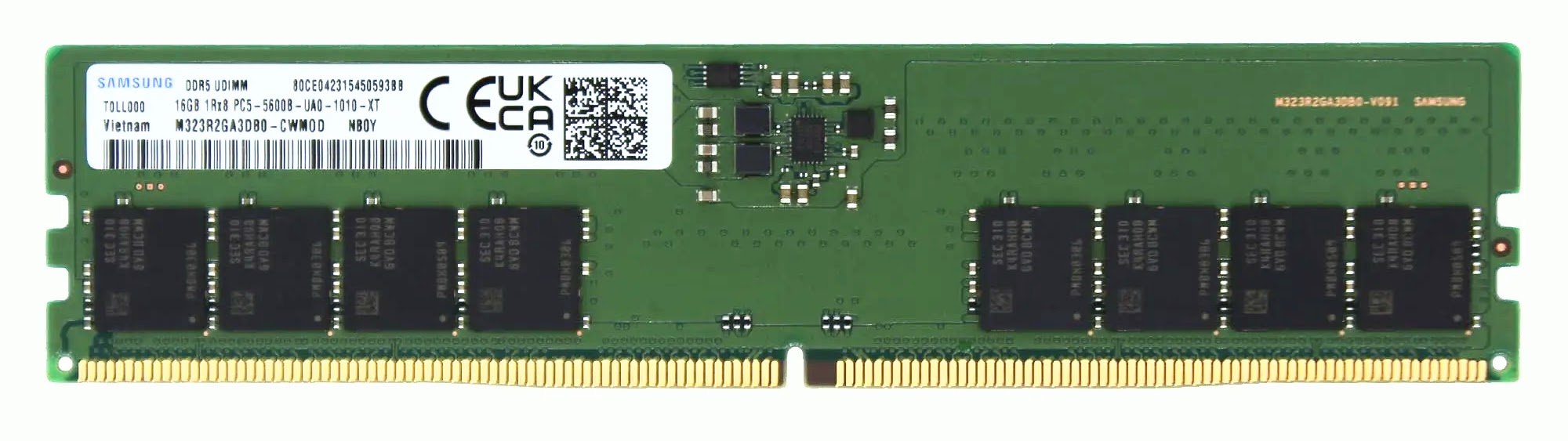 זיכרון מקורי של Samsung למחשב נייח בתקן DDR5 במהירות 6400MHz (PC5-51200) ובמתח 1.1V — מודול UDIMM במבנה 1Rx8, 288 פינים, Non‑ECC ו‑Unbuffered (לא מתאים ללפטופים).