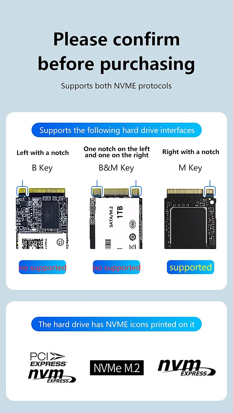 תומך בכונני M.2 NVMe SSD בלבד, עם מפתחות M Key או B&M Key.