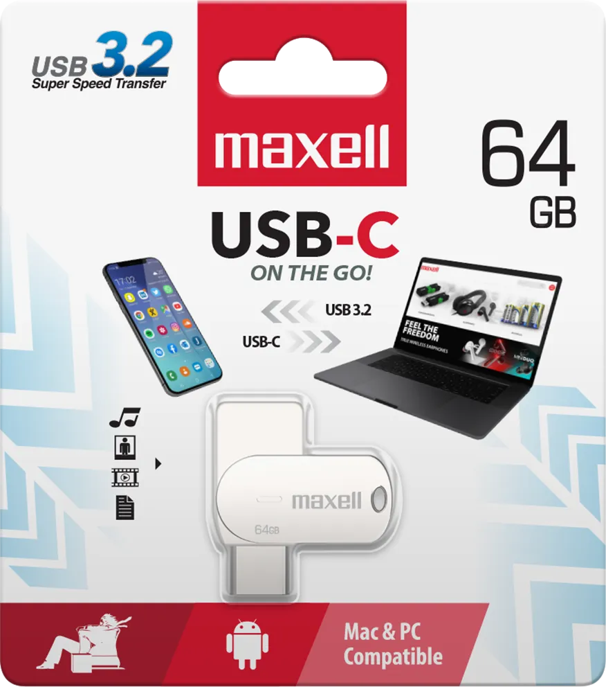 זכרון נייד 64GB Maxell USB-C and USB-A 3.2