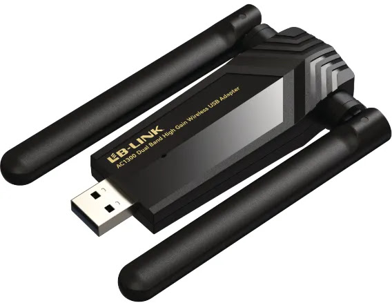 מתאם USB בתקן AC1300 High Gain בעל אנטנה כפולה והתקנה אוטומטית