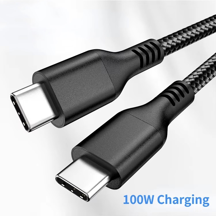 כבל טעינה מהירה 100W USB-C to USB-C באורך 2 מטר עם ציפוי הגנה על הכבל וראש אלומיניום לאריכות ימים.