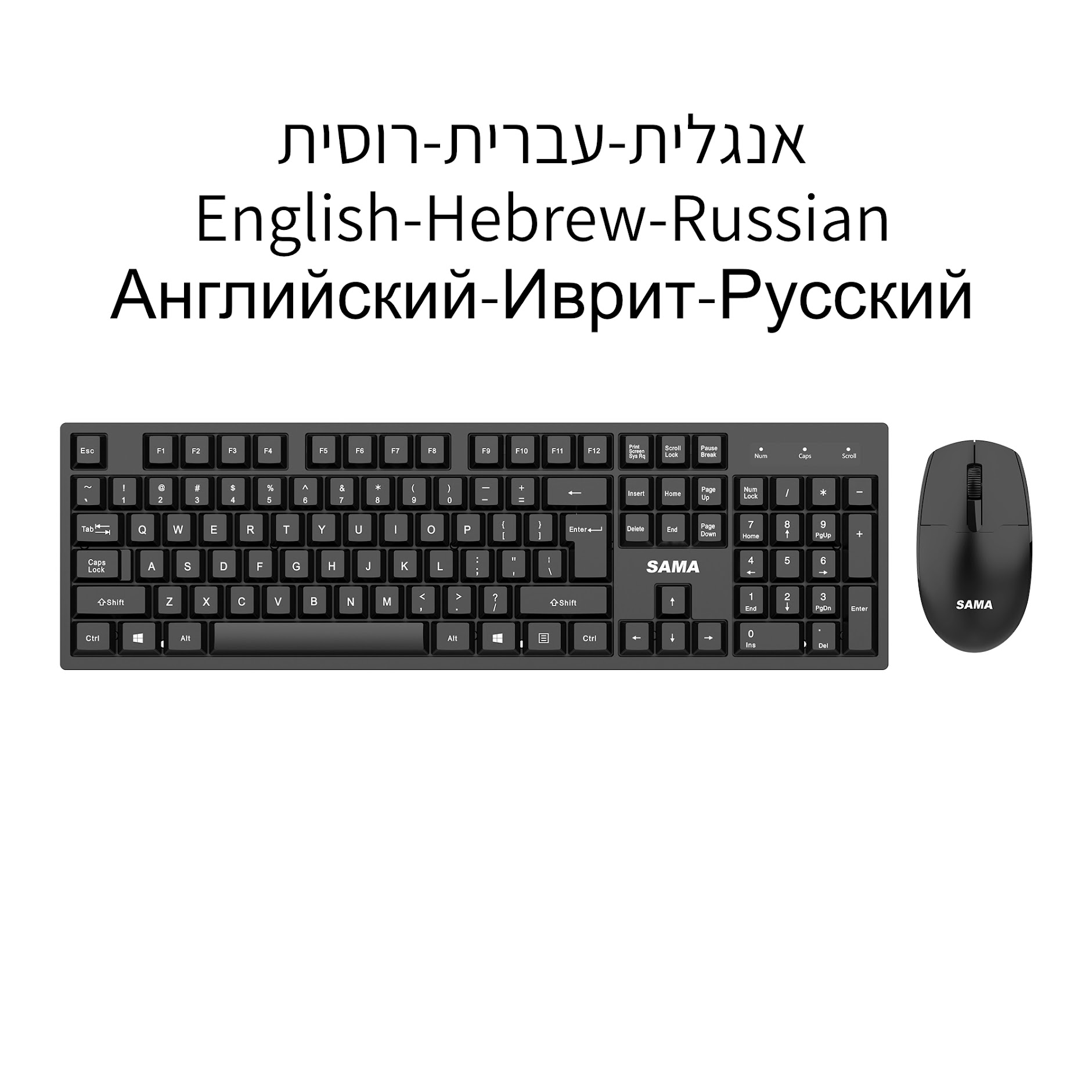 סט מקלדת ועכבר אלחוטיים למחשב עברית-אנגלית-רוסית SAMA GW1500