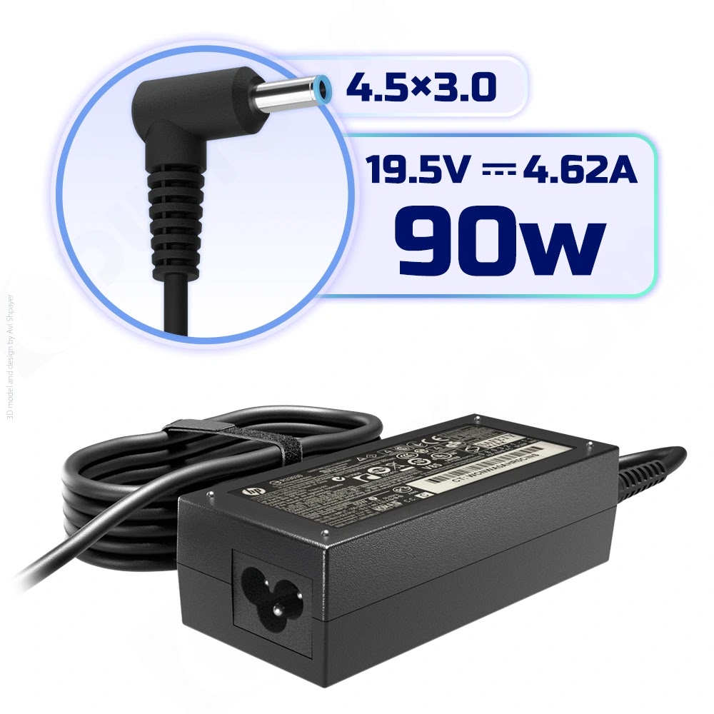 מטען ספק כח 90W למחשב נייד HP חיבור כחול 4.5x3.0