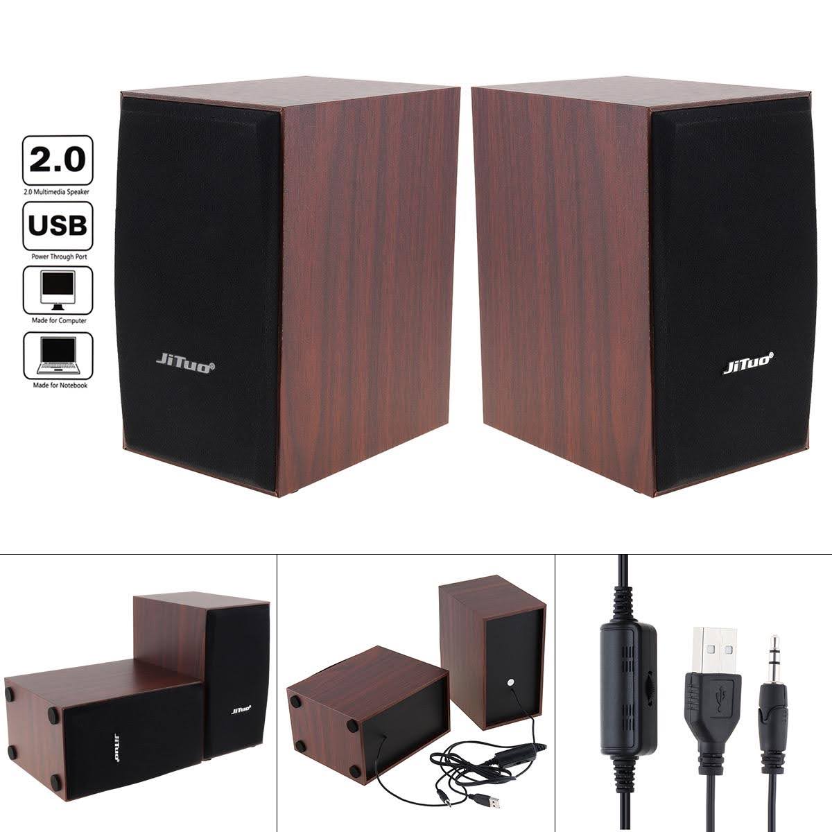 רמקולים איכותיים מדגם JT2818 עם מעטפת עץ, שליטה מובנה בכבל, חיבור USB ו-3.5 מ"מ. חוויית סאונד עשירה, מתאימים למחשב, טלוויזיה ומכשירים נוספים.
